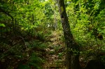 Hedgehog Ridge Trail begins just below the washed out section below Hedgehog Overlook. The trail follows the spine of Hedgehog Mt in a single track trail. The yellow blazes are frequent and easily seen. Follow yellow blazes. The trail is variable in contour. Sometimes level and other times there are steepish ascents or descents through forest. At one point the hiker must scramble over rocks to get to a great overlook, which is also a good spot for lunch! Mostly the trail passes through typical mixed hardwood/hemlock forest. The trail passes below Hogden Pasture, elev about 1300 ft and the second highest point in Deering. Hogden pasture was clearcut by the New England Forest Foundation about 7 years ago, in about 2000 but the vegetation is growing quickly. Thus there are no longer views from the top of Hogden Pasture. The Hedgehog Ridge trail drops down to Falls Rd at the southern end, which it crosses before climbing once again to High Five.