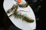 Our bladderworts typically have stalked, yellow, snapdragon-like flowers that are about the size of a quarter. The plants lack roots and are free-floating. One common species here, U., radiata, is distinctive for the radiating arms that sit on the surface of the water, keeping the plant upright. Bladderwort’s long branches extend downward into the water. Leaves form from the immersed stems and are finely dissected and fan-like, increasing their surface area and thus, enhancing the ability to absorb available nutrients.