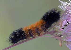Caterpillars, the larvae of butterflies and moths (Order Lepidoptera), are exquisite creatures that display an array of colors, patterns, and interesting behaviors. Although some species are considered pests in our gardens and forests, they are extremely important in terrestrial food webs, serving as the primary food source for many of our resident and migrant songbirds. Without caterpillars, our forest would be silent in spring. Caterpillars also play an important role as macrodecomposers by shredding and consuming leaves which helps to accelerate the nutrient cycling process. Fall is a great time of year to hunt for caterpillars. Some species, like the familiar wooly bear (Pyrrharctia isabella) pictured below, can be found roaming about in search of a hibernaculum, such as your wood pile, where they overwinter. Not only is caterpillar hunting good sport, it can give us a greater appreciation for the little creatures that go unnoticed around us.