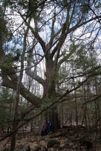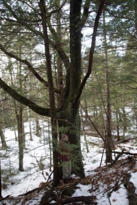 These old sugar maples are all that remain of a population of several on the Baldwin property off Reservoir Rd. They were noted in the 1980 census of big trees but today they show signs of weariness, age. In their day one can imagine that they provided a good lot of New Hampshire maple syrup to their happy humans. The tree on the right was a champion nearly 40 years ago but today is a dignified but hollowed trunk. A reminder of what once grew in this part of the forest.