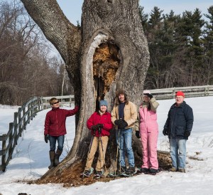 is another truly elegant sugar maple where Sleepy Brown had his house on North Road, many years ago. This tree is about 300 years old and, while looking at it leaves no doubt that it has seen a thing or two, it bears its age lightly. The Audubon Society, which now owns the tract, logged it recently and now this old tree is visible from the road. This proud old creature, surviving in the forest for all these years, does not in the least call to mind that sappy doggerel “I think I shall never see a poem lovely as a tree.”