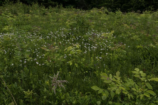 Fleabane with pale violet flowers.