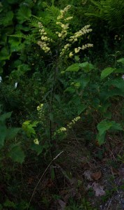 The flowers of Solidago bicolor, which are just now (end of August) opening, are white with maybe just a touch of yellow. You might not think this one was a ‘goldenrod,’ but it is. This species is common here along roadsides and other dry sites in full sun.