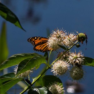 Button-bush with a monarch butterfly