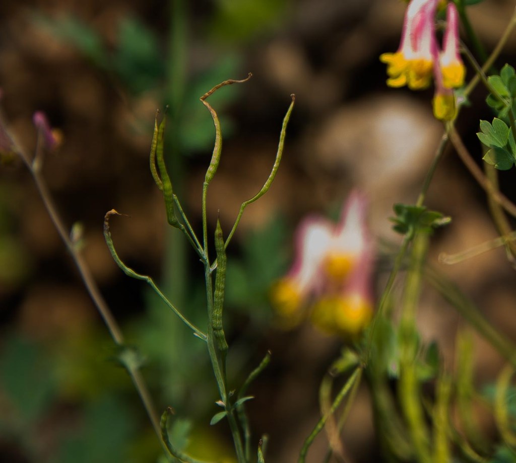 Pollinators of this poppy relative include bumble bees and skipper butterflies. I suppose the bulk of these insects is needed to force open the flower as they land on the flower’s protruding lower lip to reveal pollen. Seeds, born in long pods, are dispersed by ants and by wind, and some consider the plant to be mildly invasive. There are certainly more problematic — and far less appealing — invaders than rock harlequin.